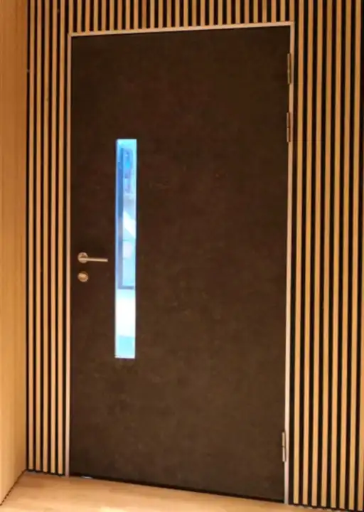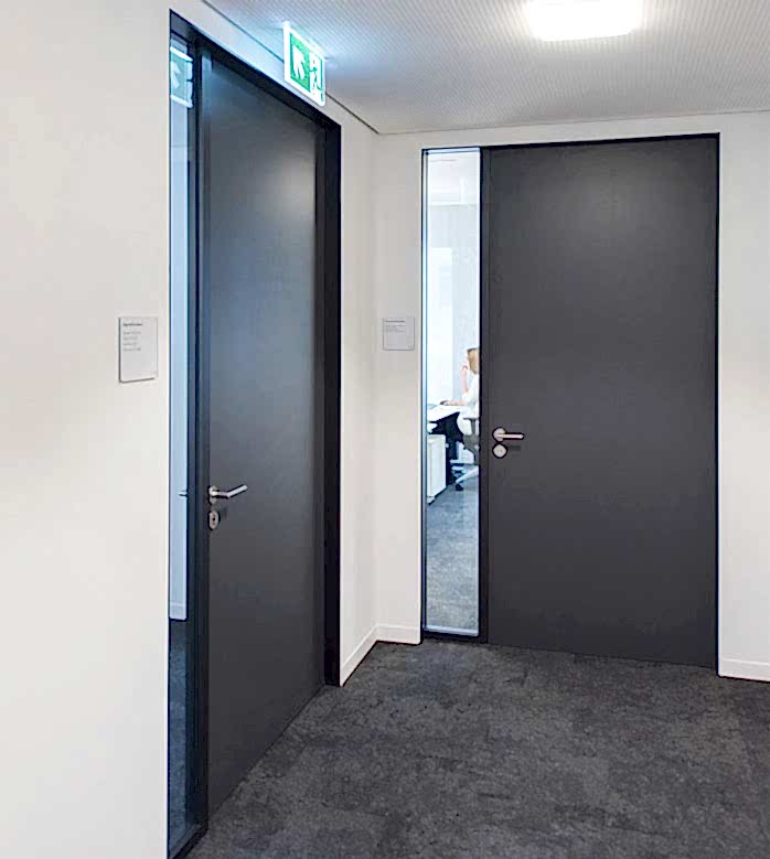 İsteğe göre tek veya çift kanat, zaman kazandıran bölünmüş çerçeve, uzun ömürlü contalar, yüksek kaliteli kilitleme donanımı ve ses geçirmez akustik kapı camları da dahil olmak üzere tamamen kendi fabrikamızda üretilip montajı yapılan bir kapı ünitesi sunuyoruz.