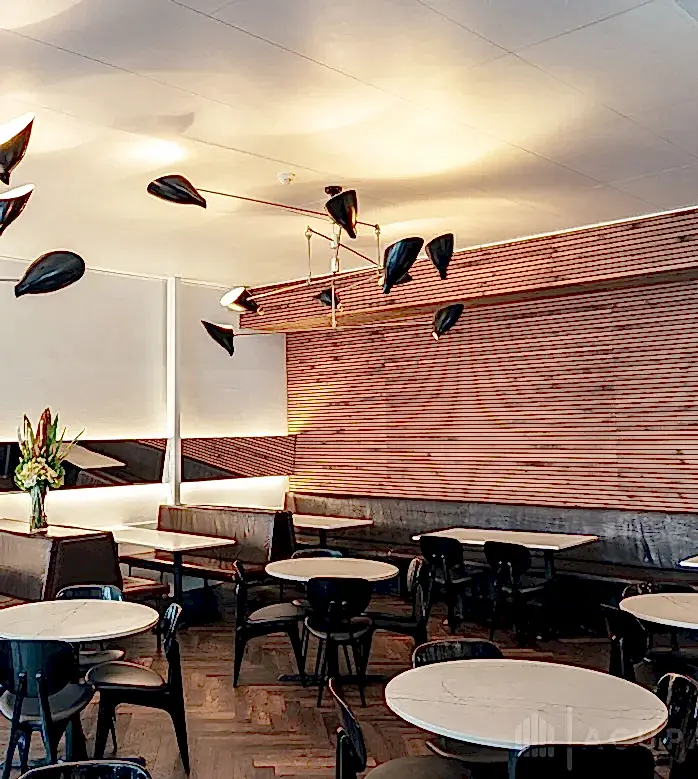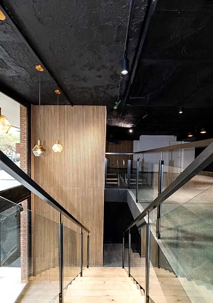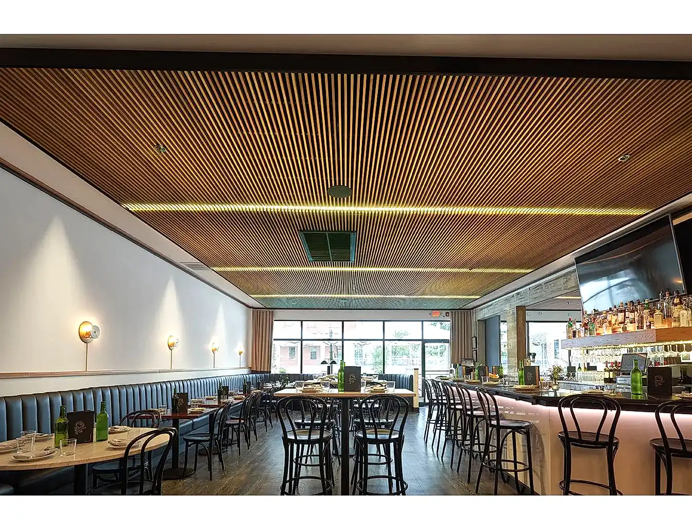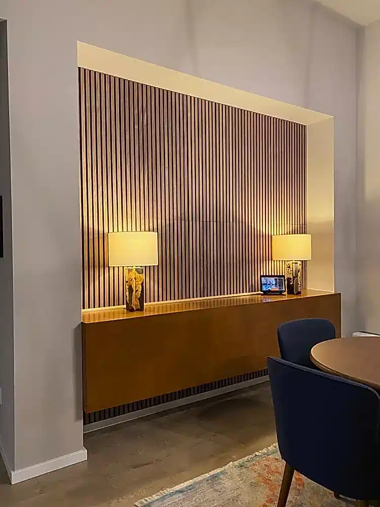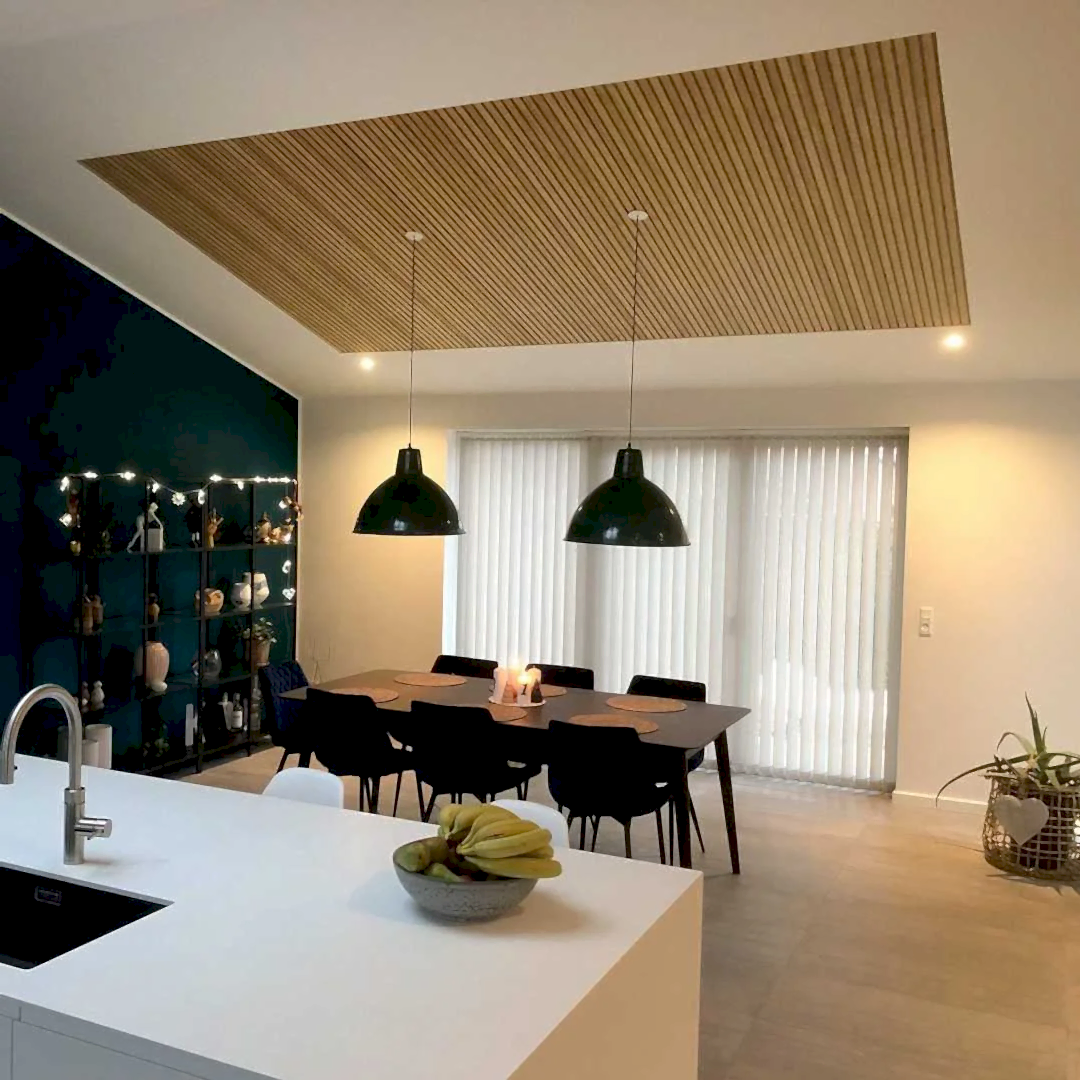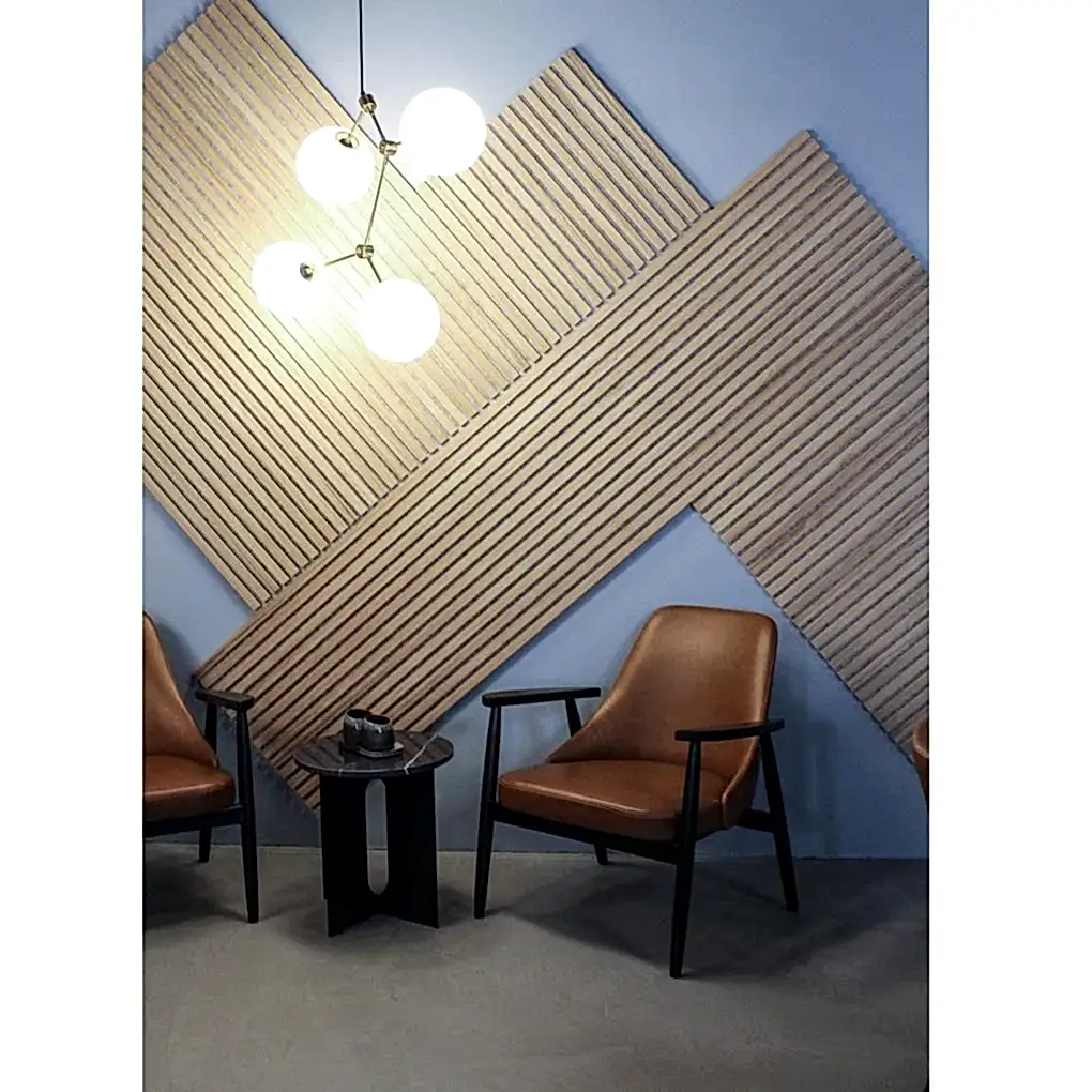 Ahşap çıtalı keçe paneller sesin bir kısmını yayar ve yeterli ses enerjisi sağlar.
