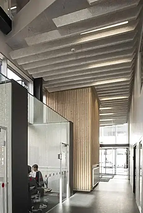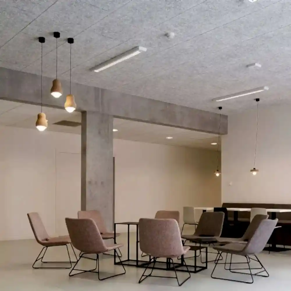 Açık malzeme yapısı ses yansımalarını azaltır ve Aksa Wood Wool®’u iyi bir ses emici yapar. Malzeme gürültüyü azaltır ve konutlarda, endüstriyel tesislerde ve kamusal alanlarda dinlendirici akustiğe katkıda bulunur.