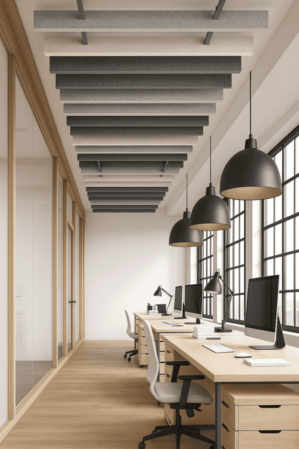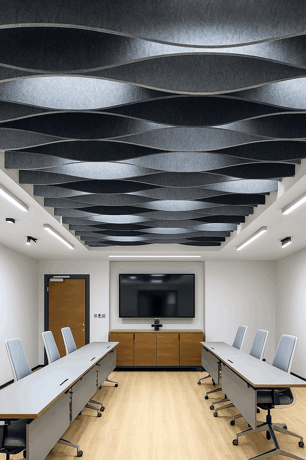 Akustik Baffle Keçe Panel – Etkili Akustik Tavan Çözümü ve Estetik Tasarım
