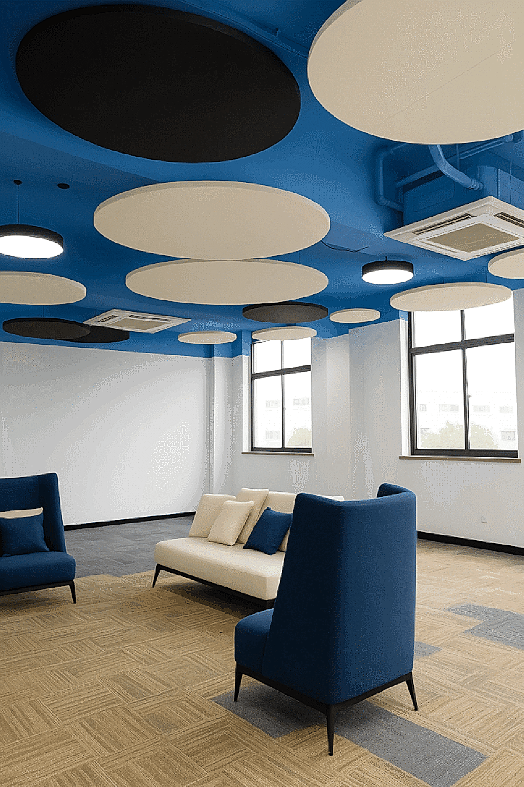 Bu dairesel paneller, akustik performansı en üst düzeye çıkararak sesin emilmesini sağlar. Ses yankılarının ve çınlamaların önüne geçer, böylece mekanlarda daha berrak ve anlaşılır bir ses ortamı oluşturur.
