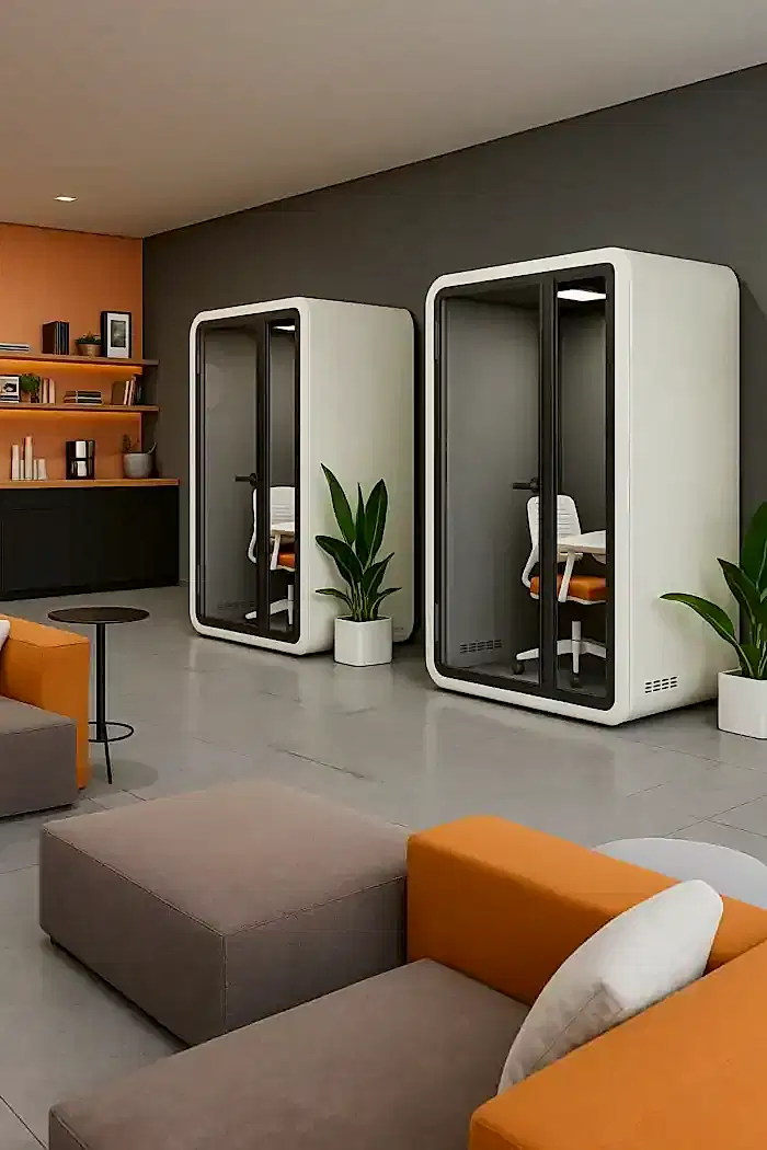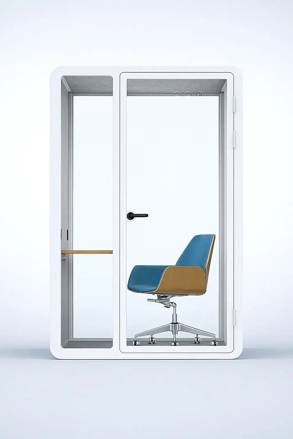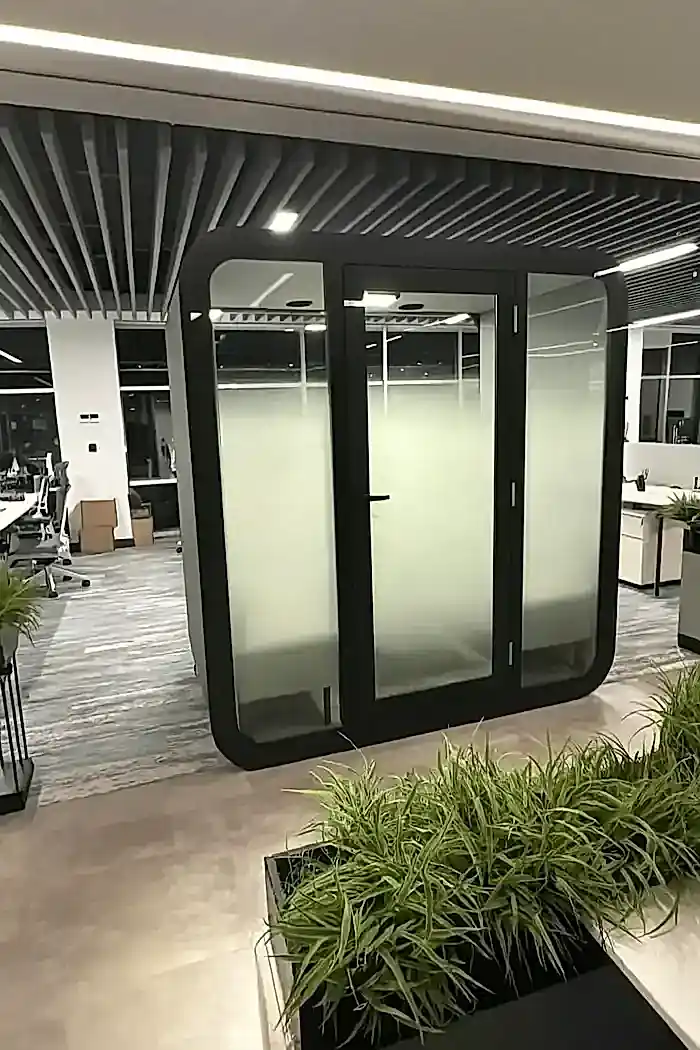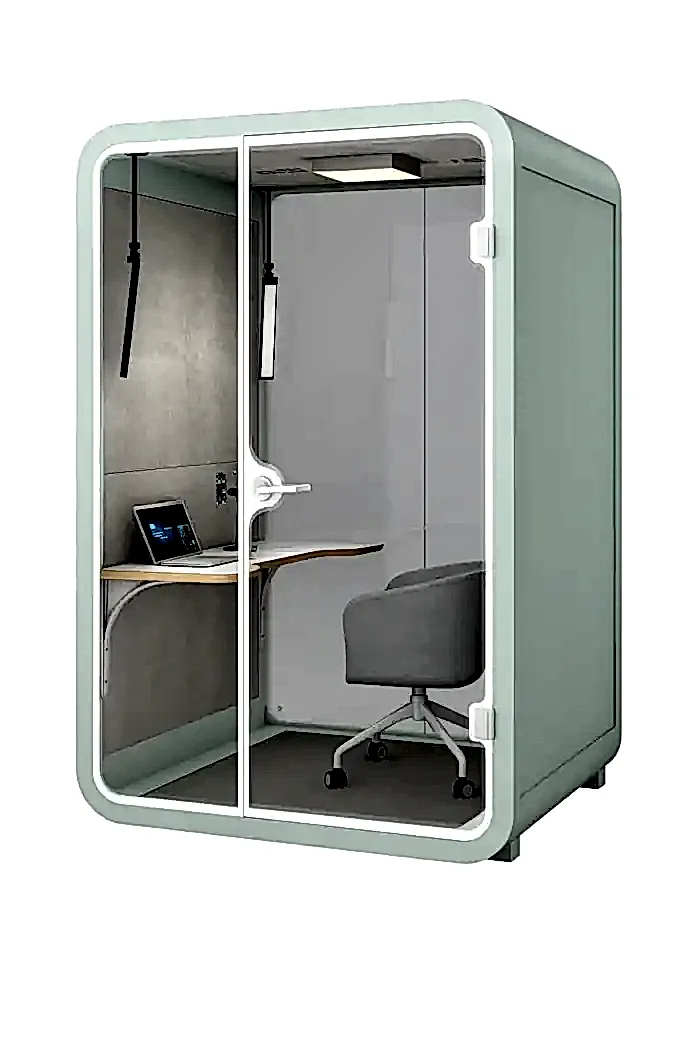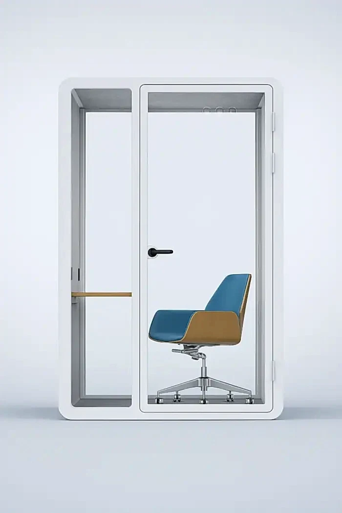 Yüksek ses yalıtımı sunan yapısıyla bu akustik çalışma kabini, dışarıdan gelen sesleri minimuma indirir ve içerideki sesin dışarıya çıkmasını engeller. Böylece hem çalışan gizliliğini sağlar hem de ortam akustiğini kontrol altında tutar. Ofis kabinleri arasında hem şıklığı hem de teknolojik altyapısı ile öne çıkan bu model, bireysel görevler, çevrimiçi toplantılar ve yaratıcı çalışmalar için ideal ortam sunar.