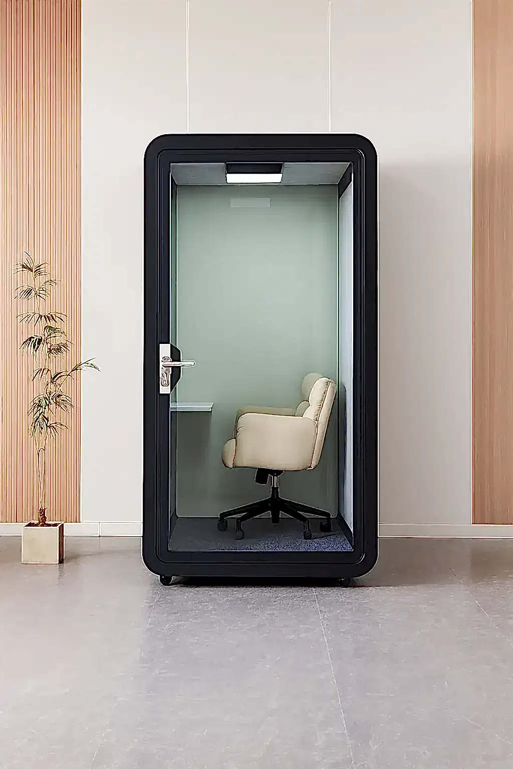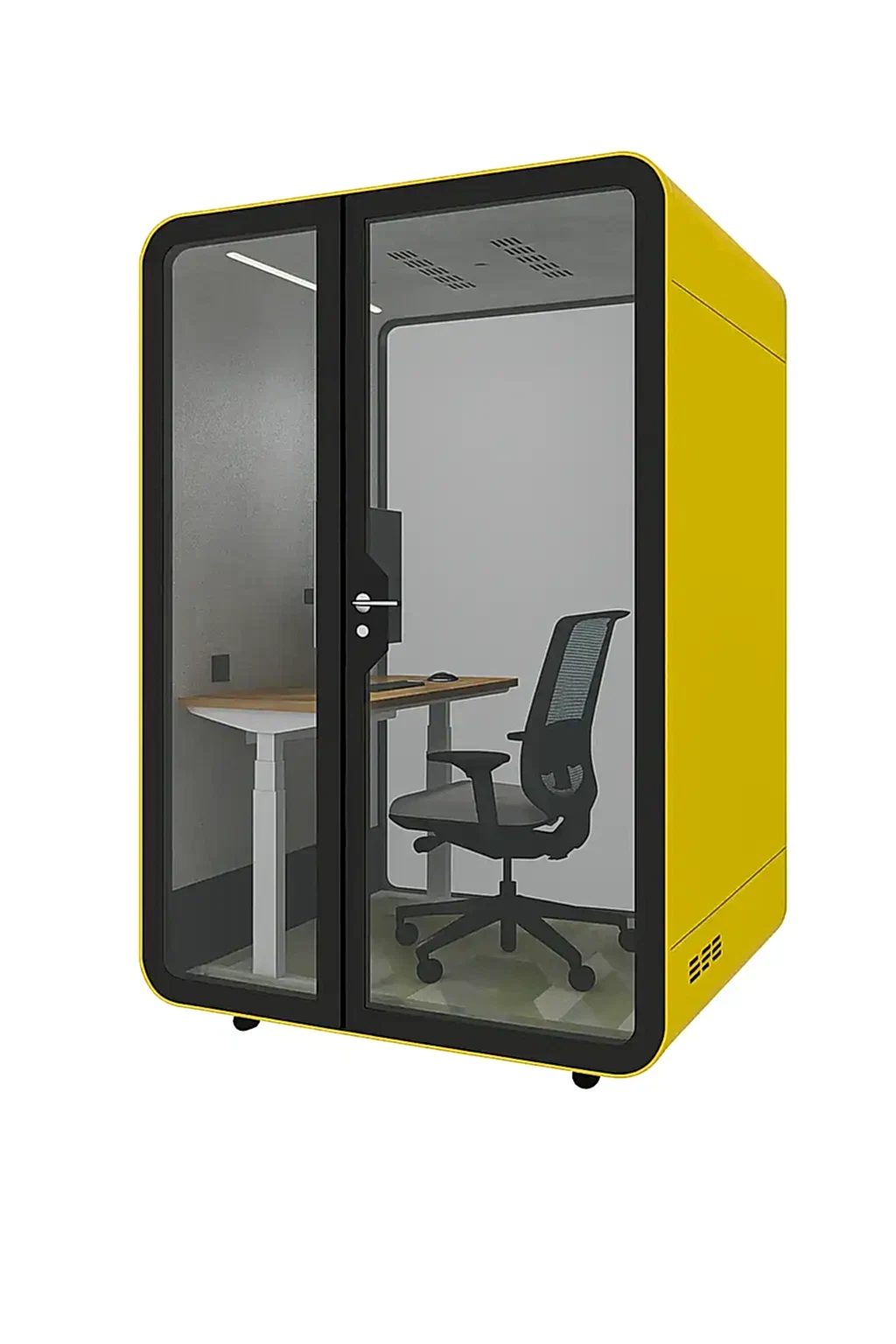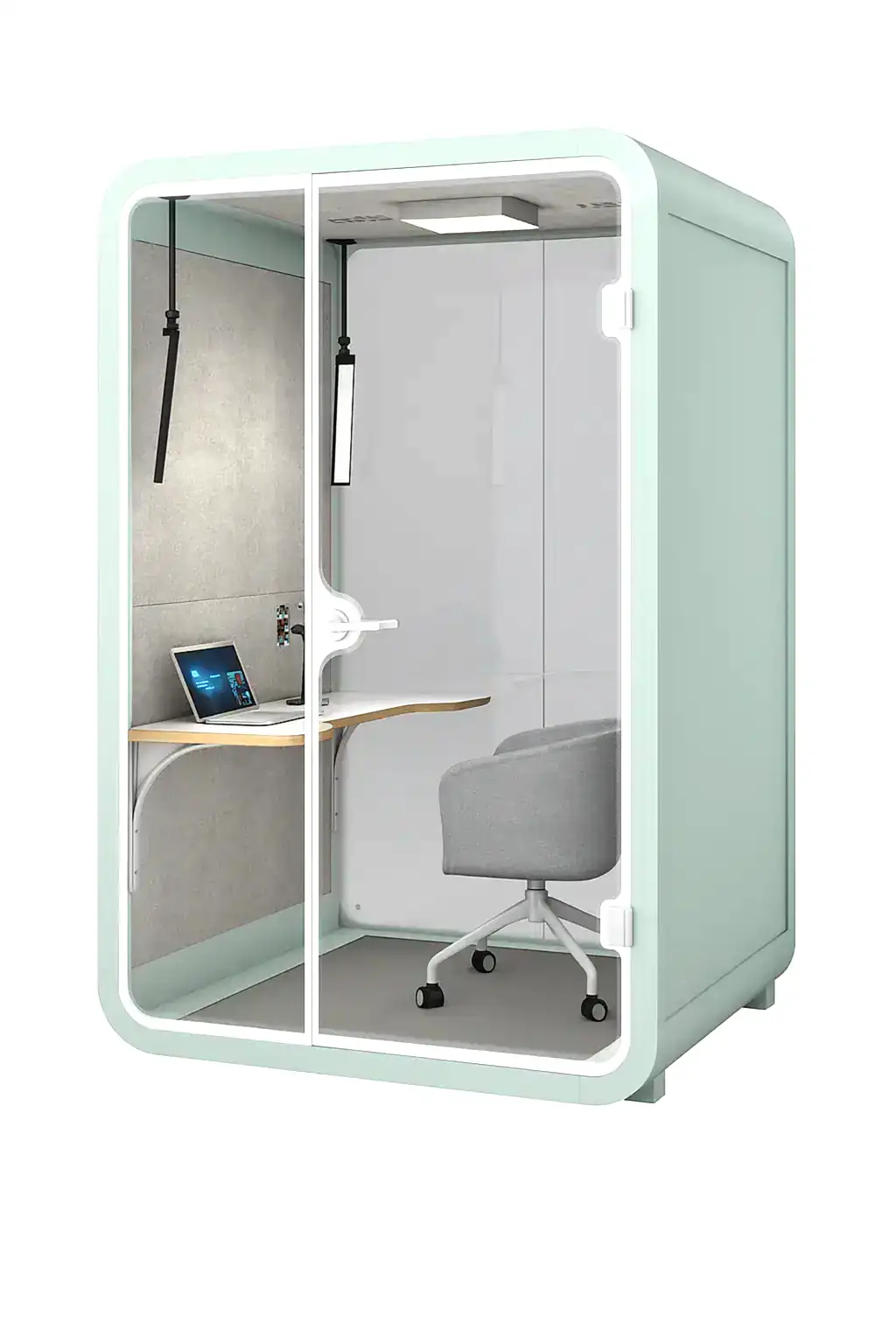 Yüksek ses yalıtımı sunan yapısıyla bu akustik çalışma kabini, dışarıdan gelen sesleri minimuma indirir ve içerideki sesin dışarıya çıkmasını engeller. Böylece hem çalışan gizliliğini sağlar hem de ortam akustiğini kontrol altında tutar. Ofis kabinleri arasında hem şıklığı hem de teknolojik altyapısı ile öne çıkan bu model, bireysel görevler, çevrimiçi toplantılar ve yaratıcı çalışmalar için ideal ortam sunar.