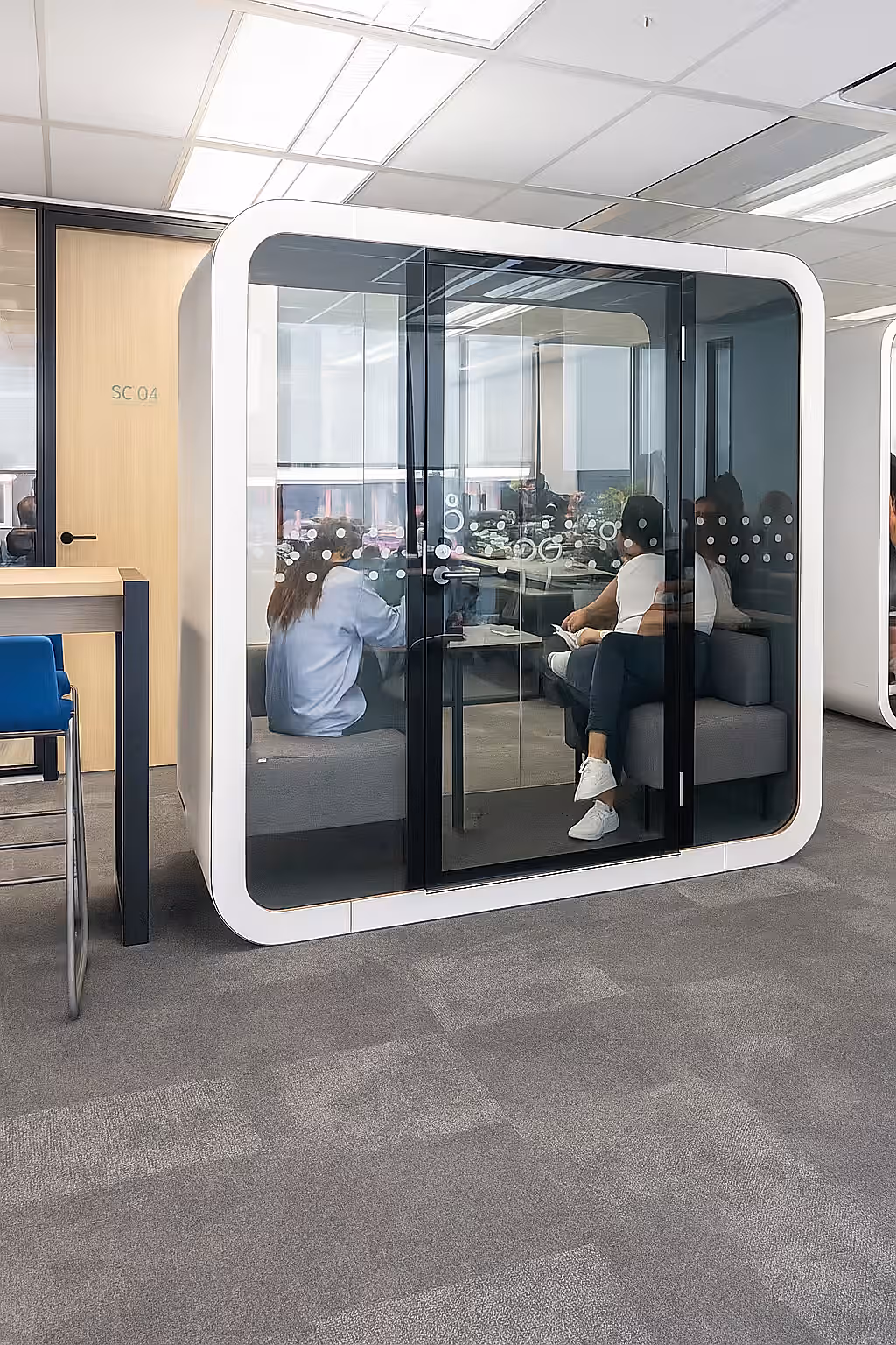 Aksa Pods® tarafından geliştirilen bu çift kişilik akustik görüşme kabini, iş yerinizde sessizlik, estetik ve işlevselliği bir arada sunar. Dikkat dağınıklığını önlemek, verimliliği artırmak ve daha kaliteli görüşmeler gerçekleştirmek için etkili bir çözümdür.