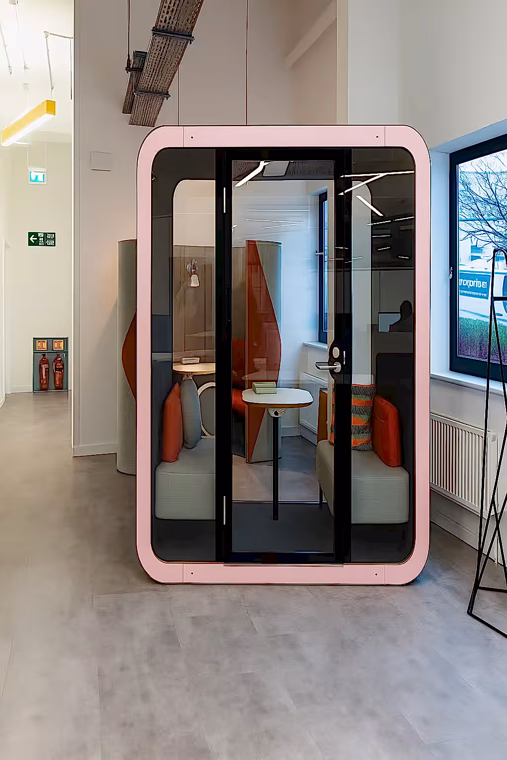 Kabinin iç donanımında LED aydınlatma, entegre havalandırma, USB ve priz çıkışları bulunur. Ergonomik oturma alanı ile kısa toplantılar, birebir görüşmeler ve video konferanslar için eksiksiz bir deneyim sunar. Estetik tasarımı sayesinde her tür ofis dekorasyonuna kolayca uyum sağlar.