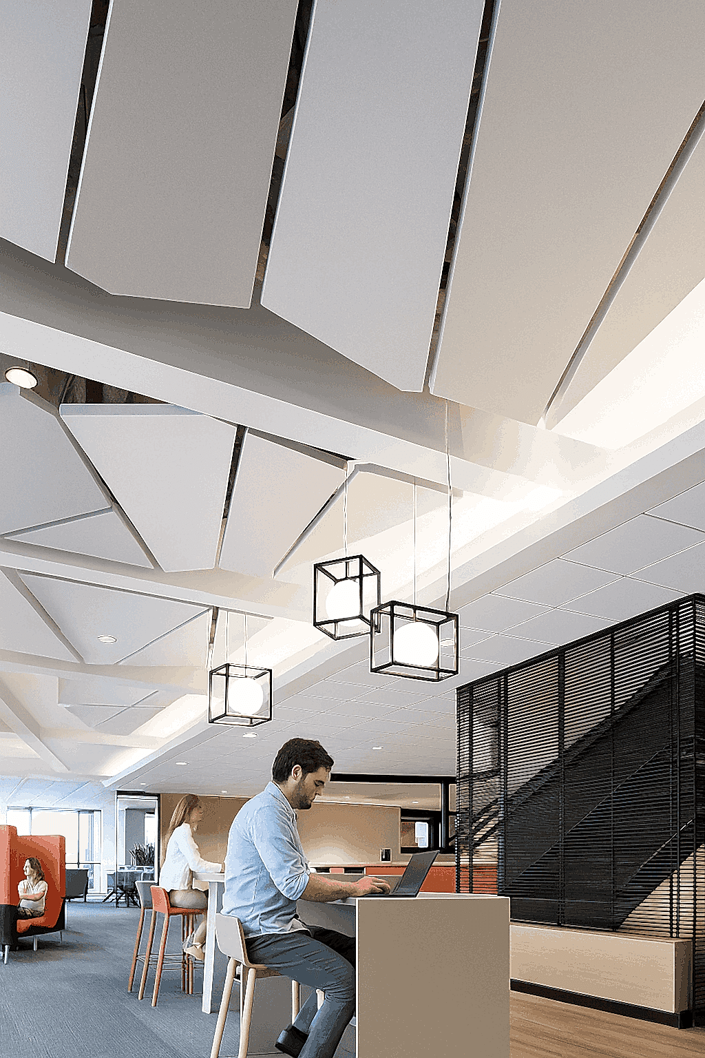Peki, akustik tavan nasıl yapılır? İşte cevabı: Akustik Keçe Yüzer Tavan Paneli ile... Kolay montaj, güçlü ses yutumu ve estetik görünüm bir araya geliyor.